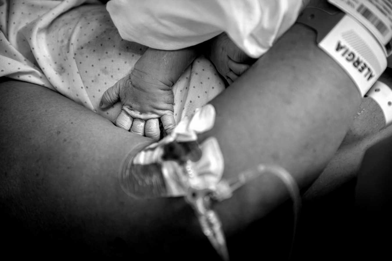 Depende de la luz de la que dispongamos. La luz de las salas de parto suele ser escasa y de mala calidad, fotográficamente hablando, incluso la iluminación de una casa suele ser débil, para no molestaros y crear un ambiente relajado. En ocasiones, eso puede implicar el tener que subir mucho la sensibilidad y al pasarlas a ByN, obtenemos fotografías de mejor calidad y a su vez se suaviza el tono de piel.