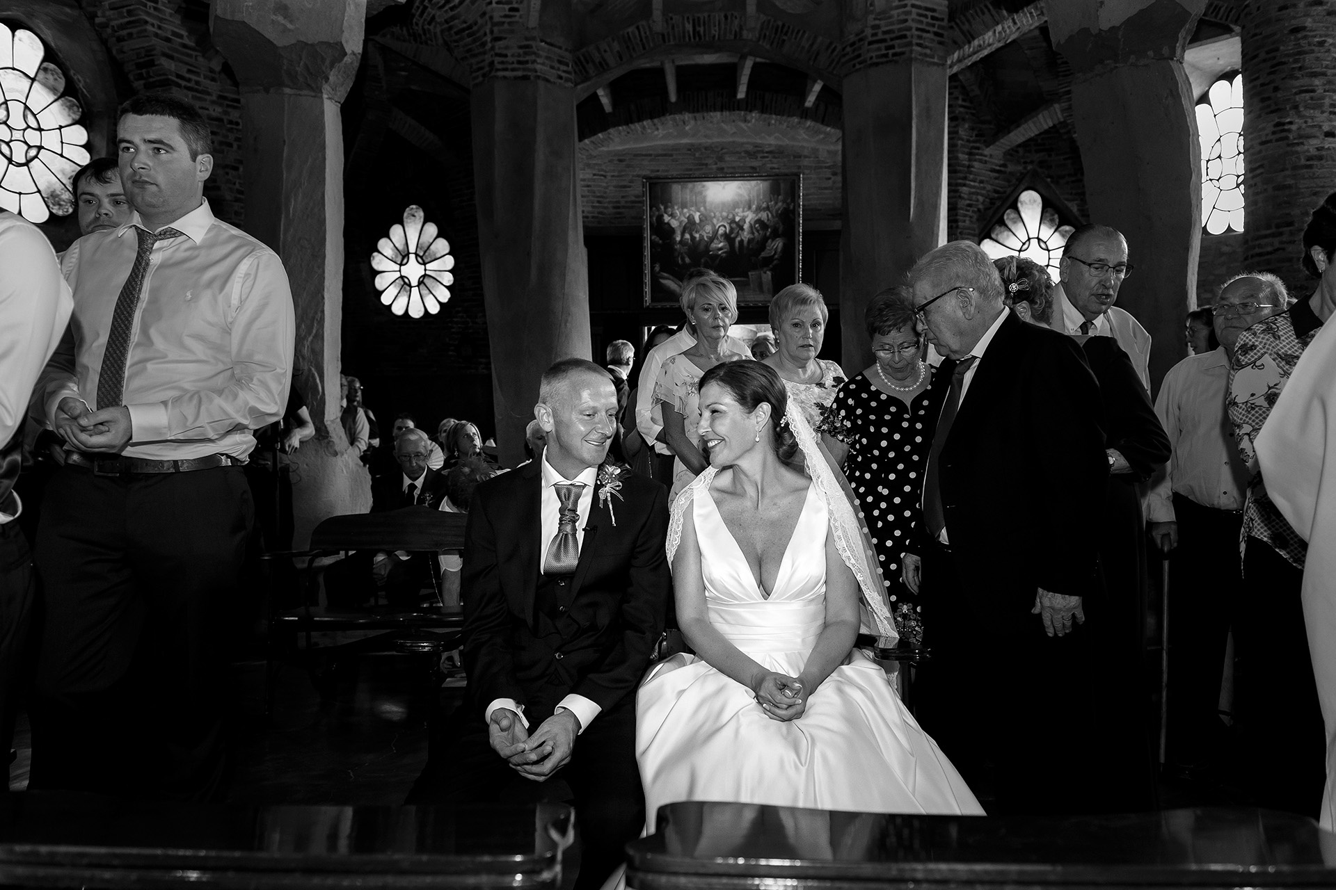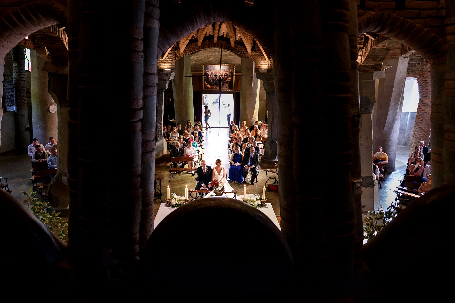Esta boda la recordaremos entre varias cosas, por su estrés a la hora de ir a las localizaciones, teníamos 4 ubicaciones y poco tiempo para llegar a ellas, y a la vez, por su tranquilidad y forma de vivir los momentos. Los preparativos de Ollie fueron en el Hotel de Le Meridian Ra, junto a la pequeña Aitana. Nos desplazamos hasta Sant boi de Llobregat, para no perdernos ni un momento de los preparativos de Mònica y su familia. Y después, nos fuimos con los compañeros de Crispetes Pictures, hacia la Colònia Güell. Allí en la pequeña y espectacular Cripta de Gaudí, se casaron los padres de Mònica años atrás y es donde decidieron casarse ellos.
