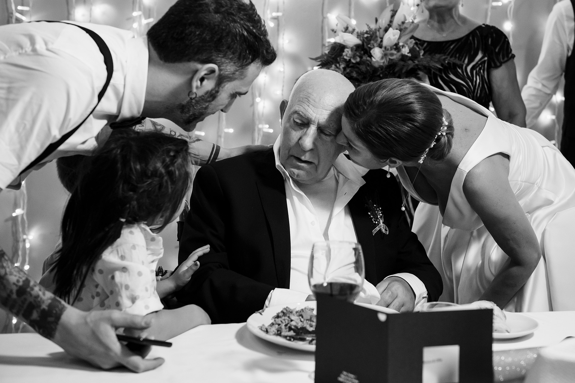 Pese a un pequeño percance, Mònica y Ollie no dejaron que su día quedara enturbiado en ningún caso. Y es que algunas veces los novios se ofuscan porque hay algo que no sale como les gustaría. Problemas de organización, lluvia, etc… Lo mejor en estos casos es parar y pensar si merece la pena. Al final y por lo que puedo ver en cada boda, lo realmente importante es la gente. Todas y cada una de las personas que asisten hacen que tu boda, sea tu boda y lo demás, son tonterías sin importancia. Que las emociones de la boda, las genere tu gente y no agentes externos!