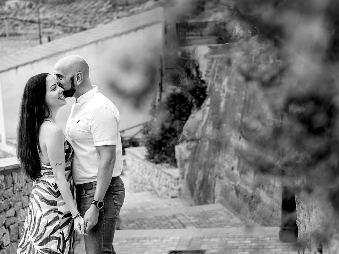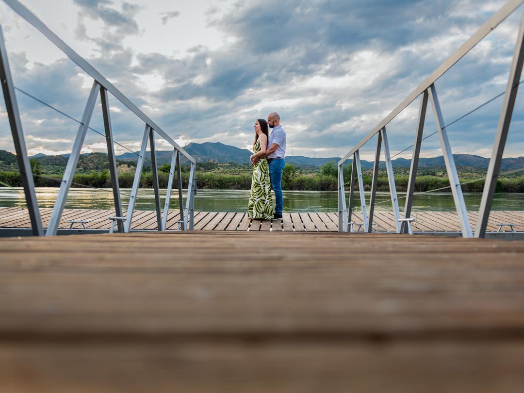 Durante la sesión, paseamos por las calles y rincones emblemáticos de Flix, aprovechando la luz natural y el entorno que los rodeaba. La combinación de espacios abiertos, zonas tranquilas y detalles del pueblo permitió capturar imágenes espontáneas, llenas de emoción y autenticidad. La complicidad entre ellos era evidente, reflejándose en cada fotografía con sonrisas, miradas y gestos que hablan por sí solos.